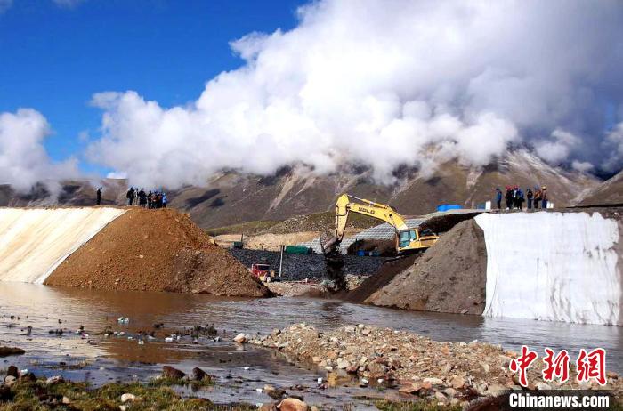10月1日,拉薩帕古水庫(kù)實(shí)現(xiàn)導(dǎo)截流目標(biāo),開啟大壩填筑序幕。 格桑扎西 攝