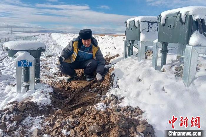 在唐古拉山地區(qū),空氣中的含氧量不足平原地區(qū)的50%,一個(gè)看似簡(jiǎn)單而又行云流水的檢查作業(yè),一套下來,工作人員們氣喘吁吁。“今天唐古拉的天氣還不錯(cuò),風(fēng)也不大。”帽檐上、眉毛上結(jié)滿了霜花的梁海峰一邊檢查一邊說。