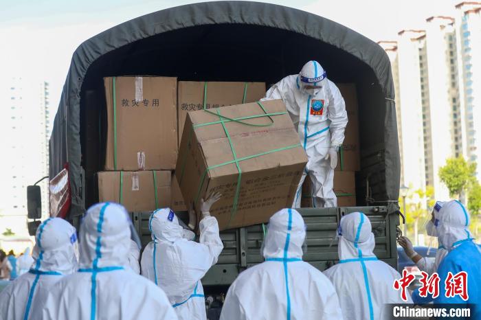 圖為西藏森林消防隊員搬運抗疫物資。 西藏森林消防總隊 供圖