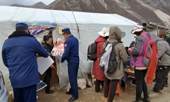 圖為山南市消防救援支隊在蟲草采集點開展消防宣傳。