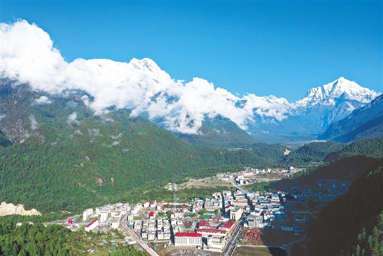 圖為2015年4月25日,尼泊爾發(fā)生里氏8.1級特大地震,位于邊境口岸的吉隆縣吉隆鎮(zhèn)受災(zāi)嚴重。圖為災(zāi)后重建的吉隆鎮(zhèn)新貌。
