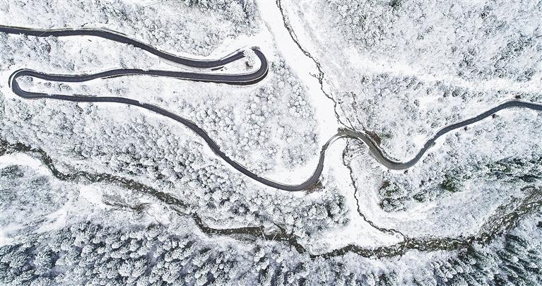 圖為統(tǒng)籌推進邊境地區(qū)交通、能源、水利、通信、氣象等基礎(chǔ)設(shè)施建設(shè)。2013年中國最后一條通縣公路——墨脫公路全線貫通,2020年完成整治改建。圖為2021年11月拍攝的墨脫公路。