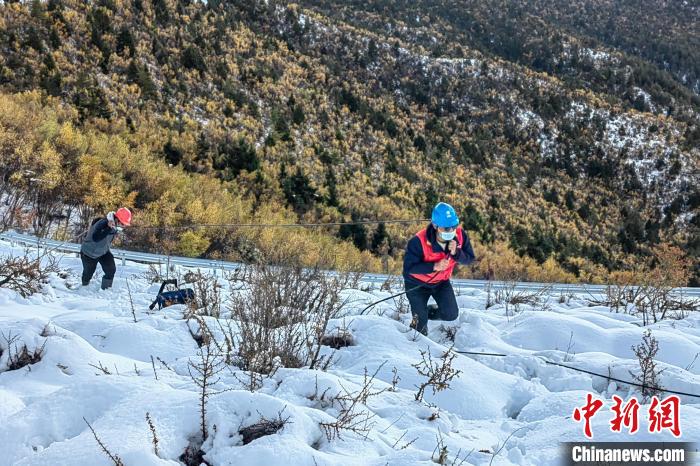 圖為搶修人員在西藏洛扎縣對大雪導致?lián)p壞的線路進行搶修。多吉朗杰 攝