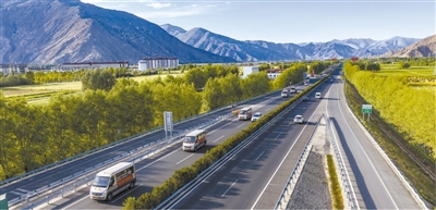 這是一次遠(yuǎn)行。從幫愛鄉(xiāng)到距離拉薩不遠(yuǎn)的森布日安置點(diǎn),路程超過500公里。剛出幫愛鄉(xiāng),因?yàn)閮鐾羶鋈?,路面顛簸。開出三四個(gè)小時(shí)后,車輛駛?cè)肴ツ陝偼ㄜ嚨母咚俟?,路途平坦舒適起來。