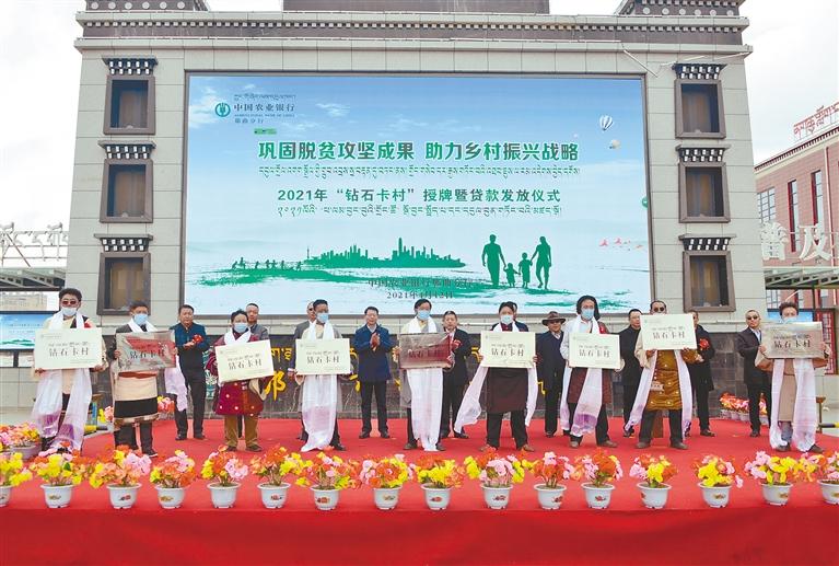 農(nóng)行那曲分行聯(lián)合色尼區(qū)委舉辦“鞏固拓展脫貧攻堅(jiān)成果、助力鄉(xiāng)村振興戰(zhàn)略”鉆石卡村授牌暨貸款發(fā)放儀式。 (圖文均由農(nóng)行那曲分行提供)