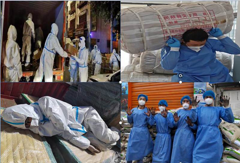 忙完吃飯時,飯菜早已涼透,為了盡快投入工作只能囫圇吞下去,導(dǎo)致看到盒飯就“胃疼”;穿著防護(hù)服上廁所不方便,于是白天基本不敢喝水,渴得不行了就小喝一口潤潤唇;睡覺是在幼兒園的地板上打地鋪,白天太陽直射防護(hù)服里面是一身汗,夜晚在零下10攝氏度的地板上瑟瑟發(fā)抖,他們在“冰與火”之歌中淬煉著身心……