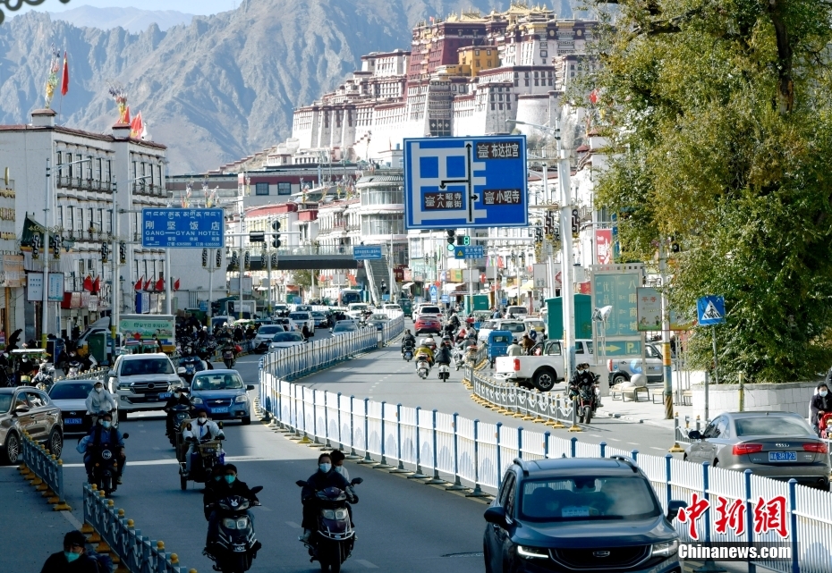 11月17日,拉薩市北京東路車流人流漸多。近日,在拉薩八廓街道、吉日街道、吉崩崗街道等主城區(qū)及市區(qū)主要路段,車流量、人流量逐步恢復(fù)。隨著拉薩市新冠肺炎疫情防控形勢(shì)持續(xù)向好,各行各業(yè)有序復(fù)工復(fù)產(chǎn),民眾生活逐步正常,街頭巷尾的“煙火氣”漸濃。 中新社記者 李林 攝