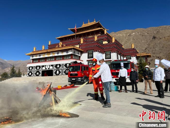 圖為甘丹寺消防救援大隊(duì)向寺廟僧人及寺管會(huì)工作人員宣傳消防知識(shí)。 拉薩市消防救援支隊(duì)供圖