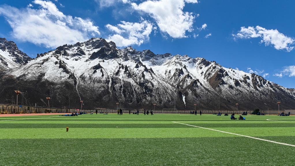 這是那曲市嘉黎縣中學(xué)的足球場(chǎng)(3月30日攝)