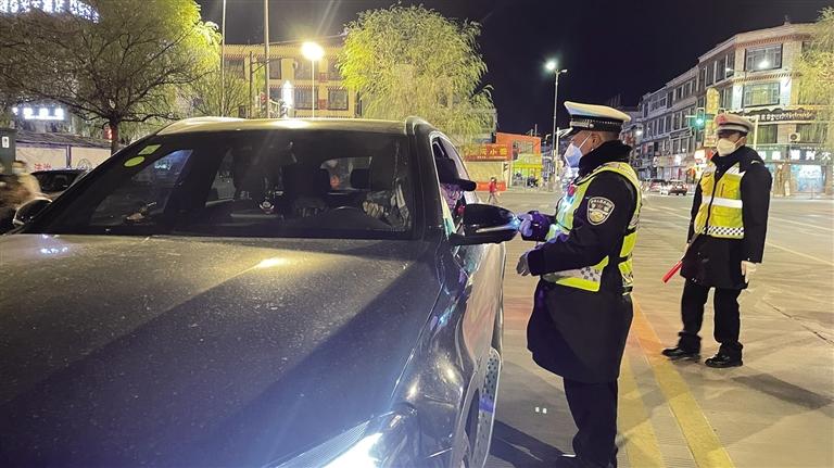 拉薩冬日的夜晚寒風(fēng)凜冽。夜色中,一輛輛汽車有序通行,街道又恢復(fù)了往日的熱鬧。當(dāng)天晚上9時(shí)許,記者跟隨拉薩市公安局交警支隊(duì)執(zhí)法監(jiān)督大隊(duì)民警前往江蘇大道,城南大隊(duì)的民警已經(jīng)設(shè)置好路障、標(biāo)牌,正在對(duì)過(guò)往車輛逐一進(jìn)行詳細(xì)排查?!澳?,請(qǐng)出示駕照?!薄澳?,請(qǐng)吹氣?!痹诿窬闹笓]下,車輛有序通過(guò)檢查點(diǎn)。市民扎西多吉駕車經(jīng)過(guò)檢查點(diǎn)后告訴記者,在這么冷的天氣里,交警依然堅(jiān)守在路面上,確實(shí)令人敬佩,應(yīng)該為他們點(diǎn)贊?!拔視?huì)牢記‘開(kāi)車不喝酒,喝酒不開(kāi)車’,也會(huì)自覺(jué)遵守交通法律法規(guī),文明出行。”扎西多吉說(shuō)。