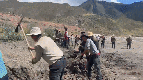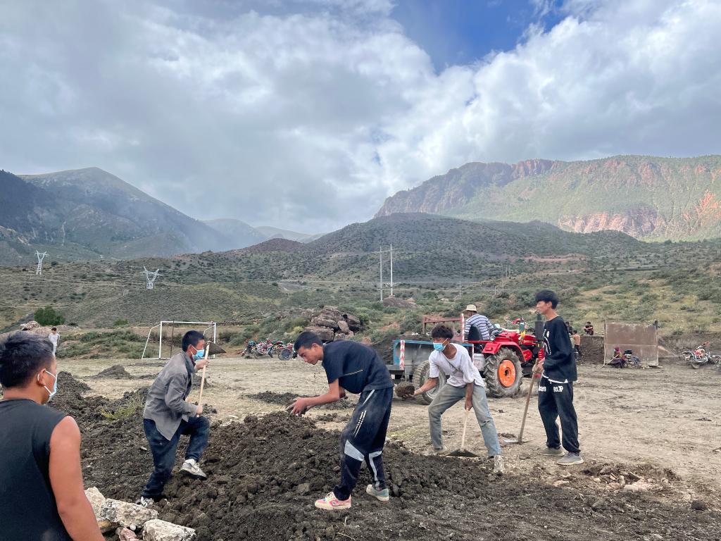 馬利鎮(zhèn)馬利村的孩子正在跟大人們一起平整場地。