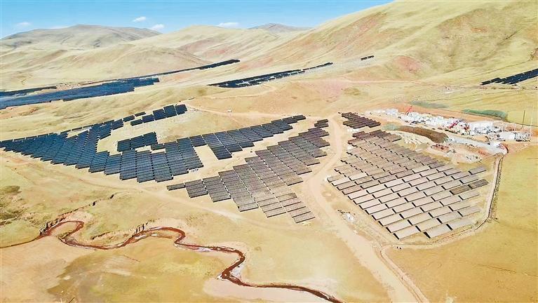 日前,昌都市保供重點項目江達索日光伏電站并網(wǎng)發(fā)電。該項目位于海拔4000米的昌都市江達縣青泥洞鄉(xiāng)索日村,年均發(fā)電量8800萬千瓦時,每年節(jié)約標煤2.68萬噸,可有效緩解當?shù)囟居秒姼叻迤陔娏θ笨冢瑸槿罕娚a生活和昌都市經濟社會發(fā)展提供安全清潔的電力保障。 圖為索日光伏電站一角(無人機照片)。通訊員 邱云 記者 李梅英 攝