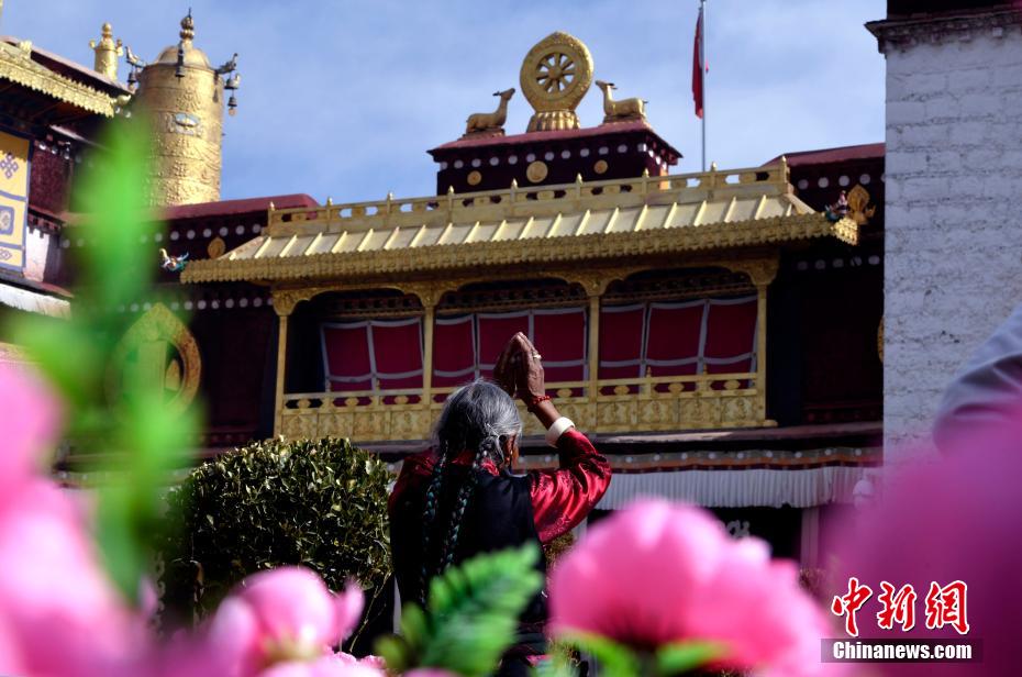 1月12日,西藏拉薩,信眾在大昭寺前朝拜。 李林 攝
