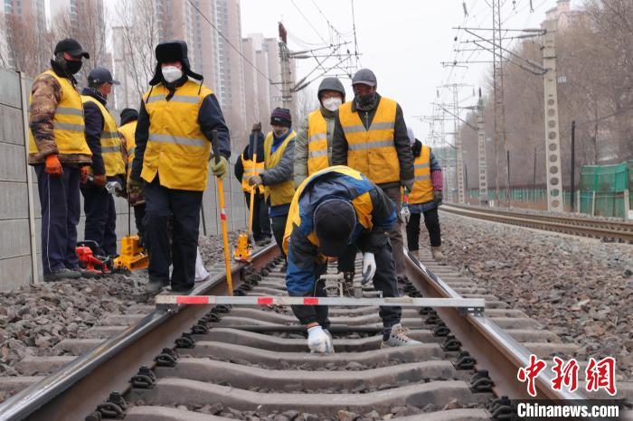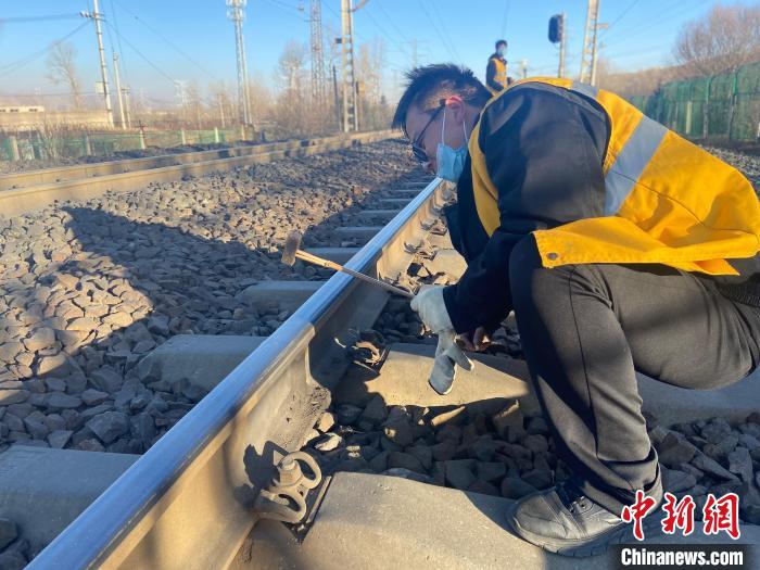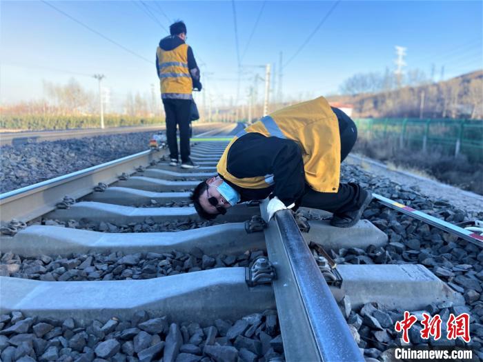 “春運期間,正是鋼軌折斷多發(fā)期,一定要仔細(xì)檢查線路的高低狀態(tài),一旦有異常必須立刻記錄解決,決不能馬虎。”走到線路防斷重點區(qū)段時,中國鐵路青藏集團有限公司西寧工務(wù)段湟源線路車間檢查工區(qū)工長侯鵬俯身趴在鋼軌上,仔細(xì)觀察并叮囑,锃亮的鋼軌頂面反射著刺眼的白光,在他的臉上一閃一閃。