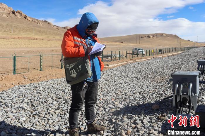“今天還算暖和,風(fēng)不大,平日里檢修設(shè)備,大風(fēng)吹得眼睛睜不開,鼻涕也擦不完,凍得直哆嗦?!睏罱ㄇ噙厵z查邊說。因?yàn)殚L期在高海拔地區(qū),他面色黝黑,臉上都是被紫外線灼傷的痕跡。