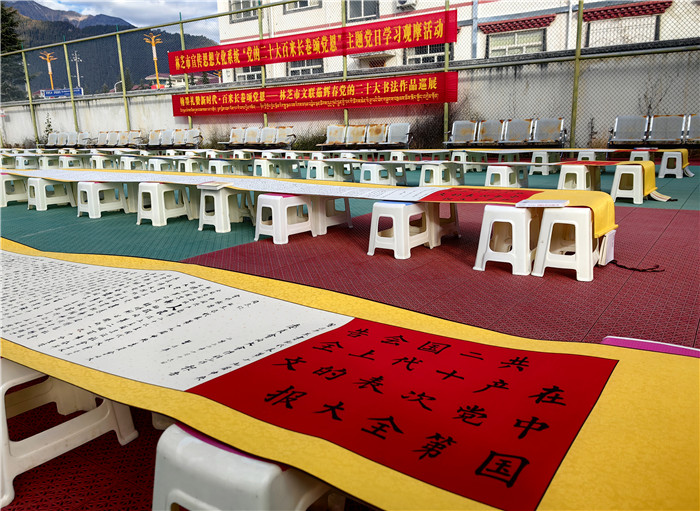 創(chuàng)新載體,全方位宣傳。林芝市統(tǒng)籌各類宣傳資源,線上線下同頻共振,全方位、多角度、寬領(lǐng)域、深層次宣傳黨的二十大精神和區(qū)黨委十屆三次全會、市委二屆三次全會精神,營造學(xué)習(xí)宣傳的濃厚氛圍。一是新聞宣傳強信心。林芝報、林芝廣播電視臺、西藏林芝網(wǎng)、微林芝等市屬主流媒體紛紛開設(shè)《學(xué)習(xí)貫徹黨的二十大》《新時代新征程新偉業(yè)》等多個專題專欄,持續(xù)推出學(xué)習(xí)貫徹黨的二十大精神相關(guān)報道。截至目前,共刊播《基層宣講員讓黨的二十大精神翩翩飛入百姓家》《軍民共話美好未來 繪就美麗鄉(xiāng)村新畫卷》等相關(guān)新聞2500余條。二是社會面宣傳筑同心。采取“屏、板、欄、幅”立體宣傳方式,在全市各級黨政機關(guān)和企事業(yè)單位大門LED電子顯示屏以及市、縣城區(qū)主要街道、跨街龍門、出租車頂燈、汽車站等公共場所的宣傳媒介上滾動播放自治區(qū)統(tǒng)一印發(fā)的宣傳標語1.2萬余條次,更新懸掛國旗3.5萬余面,制作發(fā)放宣傳海報1.5萬張、宣傳品2500余個,形成抬頭可見、隨處可學(xué)的濃厚社會氛圍。察隅縣上察隅鎮(zhèn)遲巴村村“兩委”和駐村工作隊用彩色粉筆繪制黨的二十大、“新黨章”等主題黑板報,用畫筆向村民傳遞黨的最新政策,深受群眾喜愛。三是網(wǎng)絡(luò)宣傳聚民心。充分發(fā)揮新媒體平臺宣傳形式豐富的特點,持續(xù)推送重磅報道和重點文章,策劃打造一批融媒體產(chǎn)品,在全網(wǎng)迅速興起學(xué)習(xí)宣傳貫徹會議精神熱潮。市委網(wǎng)信辦策劃制作短視頻《學(xué)習(xí)黨的二十大精神 談心得感悟》、“林芝融媒”抖音號推出《二十大時光》微視頻,將鏡頭對準二十大代表、基層黨員群眾,展現(xiàn)全市干部群眾積極向上的良好風(fēng)貌?!鞍鸵巳诿健倍兑籼柾瞥觥包h的二十大精神快問快答”系列活動,線上線下聯(lián)動學(xué)習(xí),推動黨的二十大精神入腦入心?!安煊缛诿健倍兑籼柌邉濋_展《鄉(xiāng)村振興正當時》黨的二十大主題抖音直播活動,通過網(wǎng)絡(luò)直觀展現(xiàn)新時代察隅新農(nóng)村、新氣象、新希望。目前已開展7場直播活動,觀看人數(shù)達10萬人次。四是文藝宣傳暖人心。充分發(fā)揮市、縣(區(qū))、村三級文藝文化團體作用,組織開展“深入生活 扎根人民”“幸福不忘共產(chǎn)黨 陽光路上夢起航”等各類文藝文化活動,精心打造文藝精品力作,用文藝活動、文藝作品溫暖人心。截至目前,各級文藝演出隊開展文藝匯演293場次,參與人數(shù)4.2萬余人次;創(chuàng)作推出音樂作品《沐浴幸?!?、攝影作品《我和國旗》、書法美術(shù)作品《建功新時代 奮進新征程》、文學(xué)作品《黨的光輝照萬家》等文藝作品300余個。波密縣完全小學(xué)在崗云杉林景區(qū)組織開展“學(xué)習(xí)黨的二十大,爭做好少年”采風(fēng)寫生活動,學(xué)生們以文藝創(chuàng)作的形式學(xué)習(xí)黨的二十大精神,并將學(xué)習(xí)成果轉(zhuǎn)化到作品中。市民族藝術(shù)團以深入挖掘歷史文化、講好紅色故事為主題,籌拍了微電影《立定村屹立的紅旗》。市文聯(lián)書法美術(shù)家協(xié)會理事茹輝春同志,在黨的二十大召開后用行、楷兩種書法形式撰寫了黨的二十大報告全文書卷,書卷共有八卷,每卷長30米。市委宣傳部、市文廣局、市文聯(lián)組織市書法美術(shù)家協(xié)會開展“禮贊二十大·送福進萬家”林芝市2023年新春書法美術(shù)家“深入生活 扎根人民”送祝福和采風(fēng)活動,共開展送春聯(lián)活動15場次,送出對聯(lián)、福字、掛軸、繪畫等作品8950幅(對),服務(wù)群眾6700余人次。