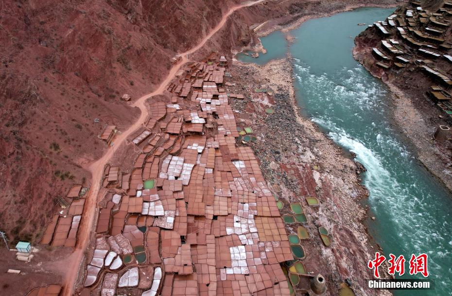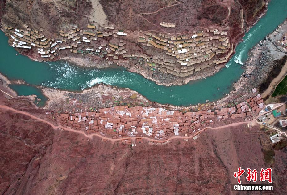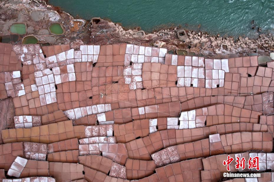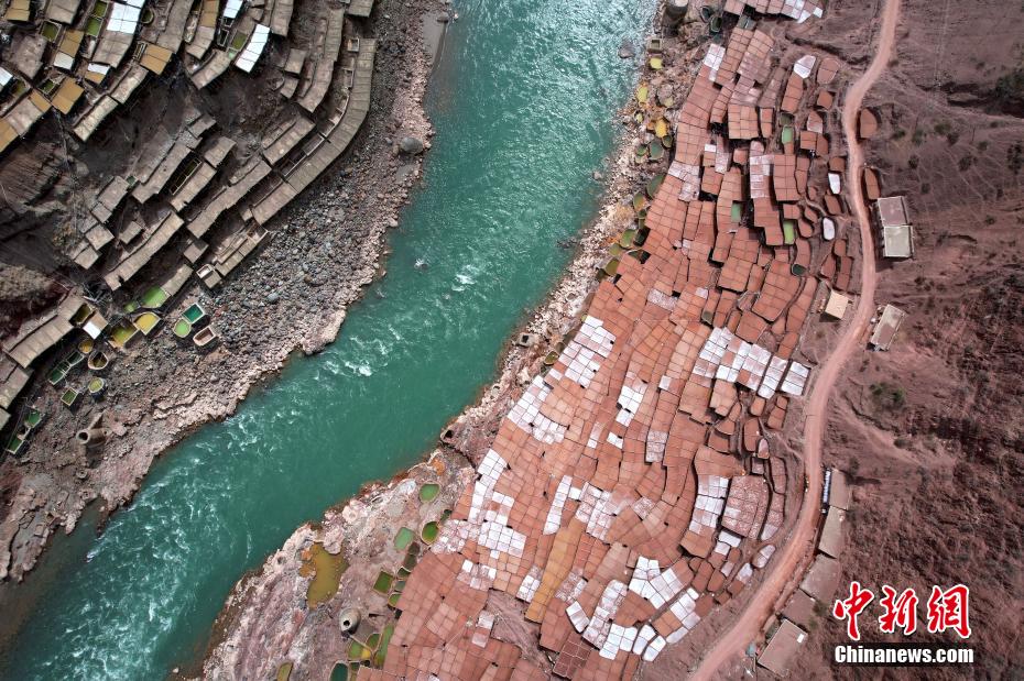 在西藏昌都芒康縣納西民族鄉(xiāng)瀾滄江兩側,有一處古老的、大大小小數(shù)千塊鹽田。史料記載,當?shù)貢覃}歷史距今已有1000多年。木柱搭建的鹽田,高低錯落,依河谷山勢,在臨江兩岸蔓延。當?shù)孛癖姀慕系柠}井、鹽池中抽出鹵水,引入鹽田,經(jīng)過陽光與風的杰作,結晶成鹽。進入鹽田,房內頂部到處懸掛鐘乳狀晶鹽,仿若“水晶宮”的世界。圖為2月13日,西藏昌都芒康千年古鹽田。(無人機照片)