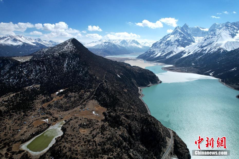 然烏湖位于西藏昌都市八宿縣,是山體滑坡或泥石流堵塞河道而形成的堰塞湖。時下,然烏湖半冰半水的湖面與雪山、藍(lán)天相互映襯,如畫一般,美不勝收。圖為2月16日,西藏昌都然烏湖。(無人機(jī)照片)