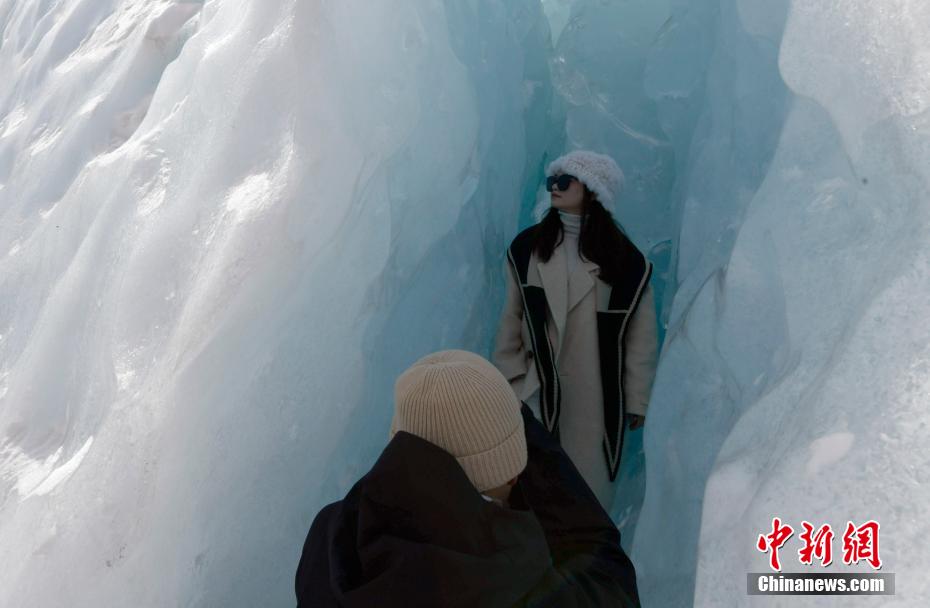 2月16日,西藏昌都來古冰川,游客拍照留念。來古冰川屬海洋性冰川,為一組冰川的統(tǒng)稱,其位于西藏昌都八宿縣然烏鎮(zhèn)境內(nèi),緊鄰然烏湖,是帕隆藏布的源頭。冬天的來古冰川有著別樣的景致,陽(yáng)光照射下顯出藍(lán)色,吸引眾多游客前來觀賞。