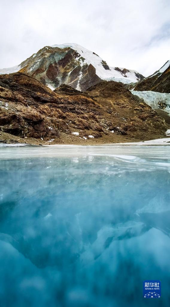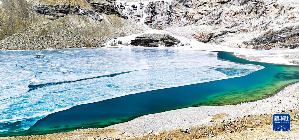 這是瓊穆崗嘎冰川上的一處冰湖(手機照片,2月20日攝)。新華社記者 沈虹冰 攝