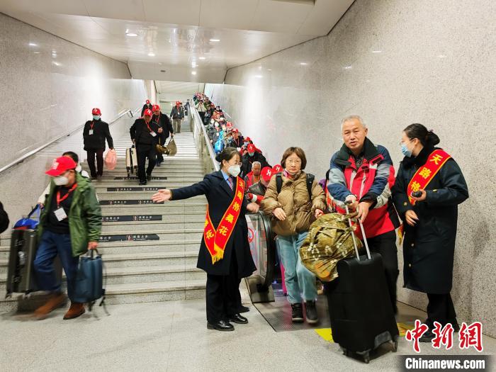 圖為乘坐首趟進(jìn)藏旅游專(zhuān)列的旅客進(jìn)站。楊紅健 攝