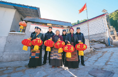 圖為西藏亞東出入境邊防檢查站移民管理警察看望慰問“三個(gè)老阿媽”。李錦輝攝