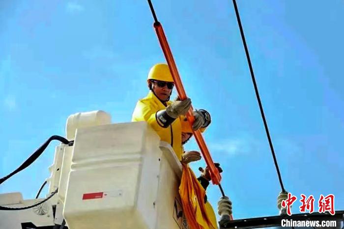 圖為扎西尼瑪進行電力搶修作業(yè)。受訪者供圖