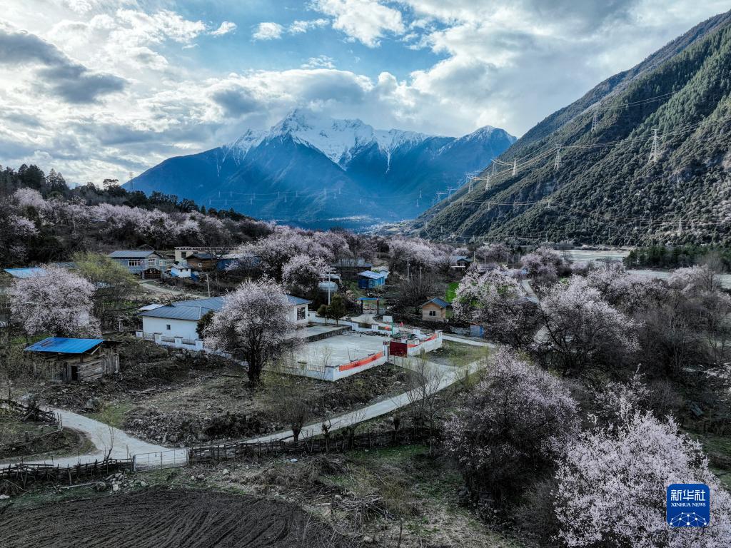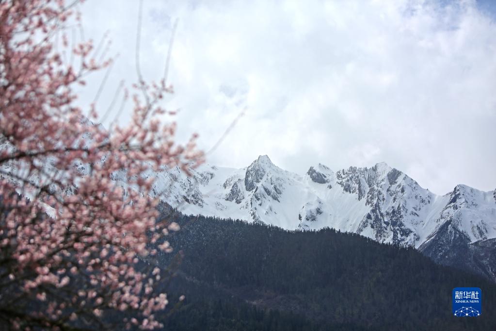 近日,林芝市波密縣古通村漫山遍野桃花盛開,與高原雪山相映成趣。