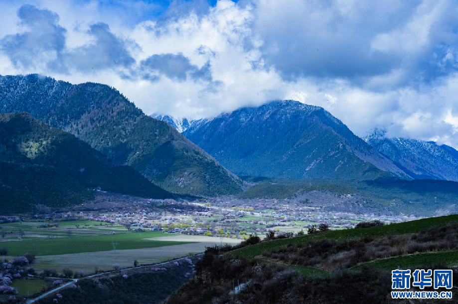 林芝市波密縣境內(nèi)桃花和雪山相互映襯(3月25日攝)。新華網(wǎng) 旦增努布 攝