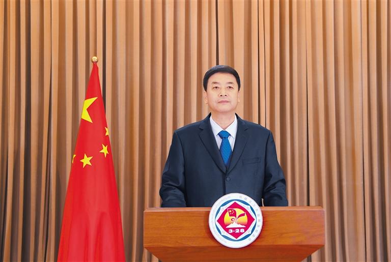 同志們,朋友們!征程越是壯闊,目標越是遠大,越需要核心的掌舵定向、真理的指引領(lǐng)航。今年的全國兩會,習(xí)近平總書記再次全票當(dāng)選國家主席、中央軍委主席,充分反映了全黨全軍全國各族人民的共同心愿,充分體現(xiàn)了黨的意志、人民意志、國家意志的高度統(tǒng)一。有習(xí)近平總書記掌舵領(lǐng)航,我們就有了團結(jié)奮斗的“主心骨”、迎擊風(fēng)浪的“定盤星”!