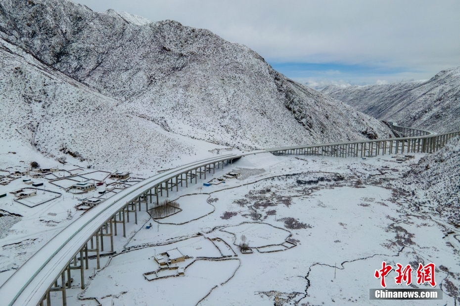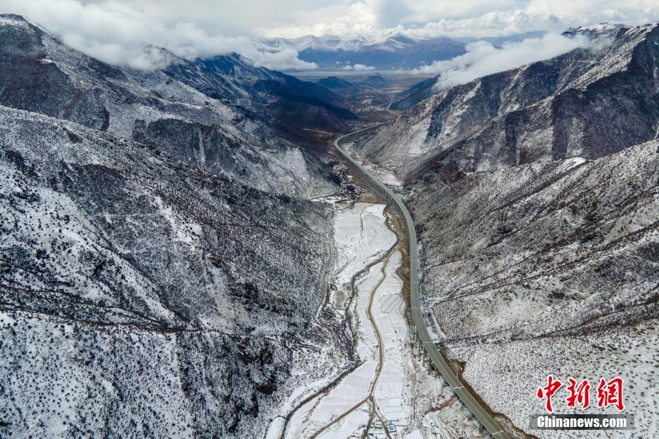 3月28日,西藏S5線拉薩至澤當(dāng)快速通道項(xiàng)目控制性工程圭嘎拉隧道左洞實(shí)現(xiàn)貫通。圖為西藏S5線拉薩至澤當(dāng)快速通道項(xiàng)目拉薩達(dá)孜段。(無人機(jī)畫面)