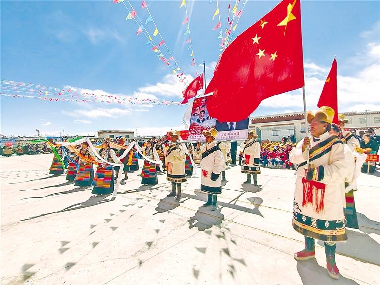 悠揚的歌聲獻(xiàn)給黨,歌唱黨的英明領(lǐng)導(dǎo);歡快的舞蹈跳起來,跳出人民幸福生活。從珠峰腳下到年楚河畔,從高原牧場到山谷林地,處處升起面面五星紅旗,贊美共產(chǎn)黨的歌聲響徹天際,匯聚起強大動能。