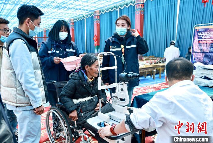 圖為專業(yè)眼科醫(yī)生為老人檢測(cè)視力。 格桑 攝