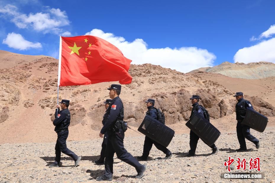 近日,西藏阿里邊境管理支隊(duì)扎西崗邊境派出所組織民警和護(hù)邊員通過乘車巡邏和徒步巡邏相結(jié)合的方式,前往海拔4800米的“守邊固邊第一村”——典角村古格川執(zhí)勤點(diǎn)巡邏,經(jīng)過一個小時的車巡和一個小時的徒步巡邏,民警到達(dá)了古格川執(zhí)勤點(diǎn)。通過巡邏,及時掌握了邊境一線情況,確保了邊境轄區(qū)安全穩(wěn)定。圖為民警與國旗合影。郭遠(yuǎn)敬 攝