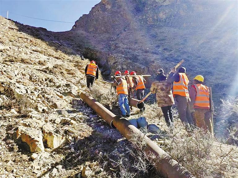 圖為中鐵二十一局工人在巴嘎雪片區(qū)將主鋼管轉(zhuǎn)運(yùn)至焊接點(diǎn)位。 記者 楊小娟 攝