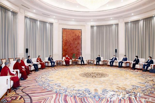 班禪說,非常高興再次來到山東,通過考察親身感受到了山東經(jīng)濟社會發(fā)展取得的巨大成就,體會到了中國共產(chǎn)黨領導和中國特色社會主義制度的顯著優(yōu)勢。班禪表示,將牢記習近平總書記的諄諄教導,堅定擁護中國共產(chǎn)黨的領導,大力弘揚藏傳佛教愛國愛教光榮傳統(tǒng),為維護祖國統(tǒng)一、民族團結(jié)、宗教和順作出自己的貢獻。衷心祝愿山東各項事業(yè)蓬勃發(fā)展,祝福各族人民幸福安康。
