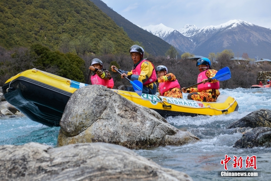 4月16日,2023年阿依舍·中國漂流聯(lián)賽(西藏工布江達縣站)的比賽在西藏林芝落下帷幕。據(jù)悉,此次比賽共設(shè)靜水雙人艇競速賽、靜水漂流筏排位賽、激流漂流筏繞標(biāo)賽、激流漂流筏追逐賽4個項目。圖為激流漂流筏追逐賽比賽現(xiàn)場。