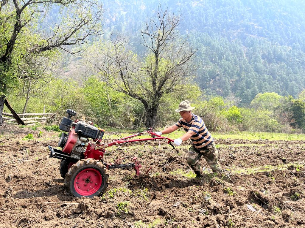 村民夏多正在翻耕田地(4月15日攝)。新華社記者王澤昊 攝