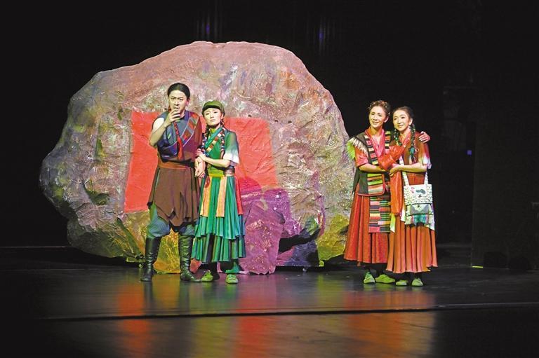 歌舞劇《天邊格桑花》以“七一勛章”獲得者卓嘎一家為原型,通過歌曲、舞蹈、情景表演等藝術(shù)形式,演繹了一家兩代人守邊衛(wèi)國的感人故事。該劇編劇白冰表示,用歌舞劇的形式謳歌、頌揚愛國守邊精神,能更好展現(xiàn)故事背景以及雪域高原獨特的民族風情。