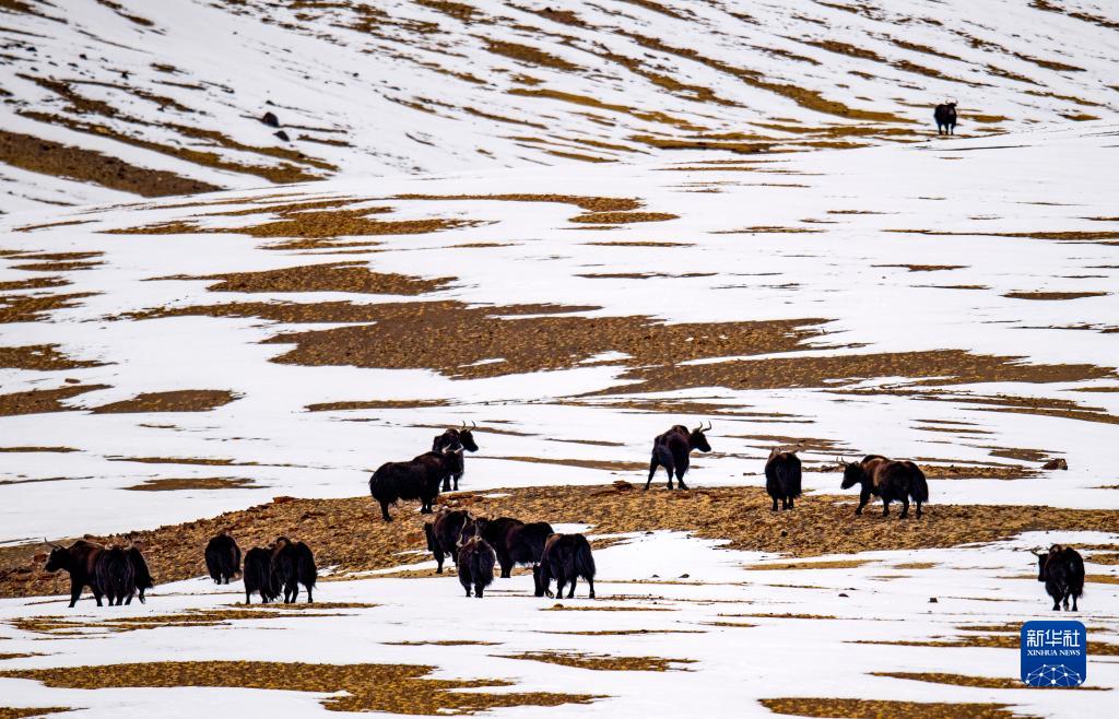 這是在羌塘國家級自然保護(hù)區(qū)那曲市雙湖縣區(qū)域內(nèi)拍攝到的成群的野牦牛(4月17日攝) 。新華社記者 姜帆 攝