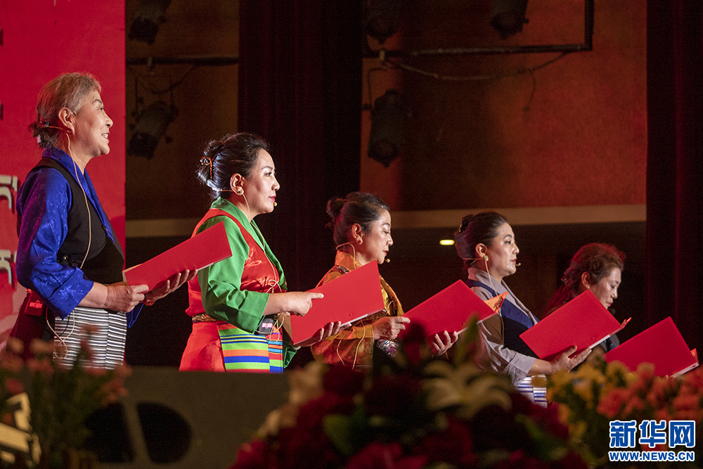 4月23日,拉薩萌升老年大學學員在“夕陽紅”西藏老年閱讀活動現場朗誦。新華網 旦增努布 攝