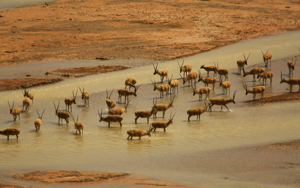 部分雄性藏羚在羌塘國家公園候選區(qū)江俄藏布泡澡 (羌塘國家級自然保護(hù)區(qū)管理局供圖)