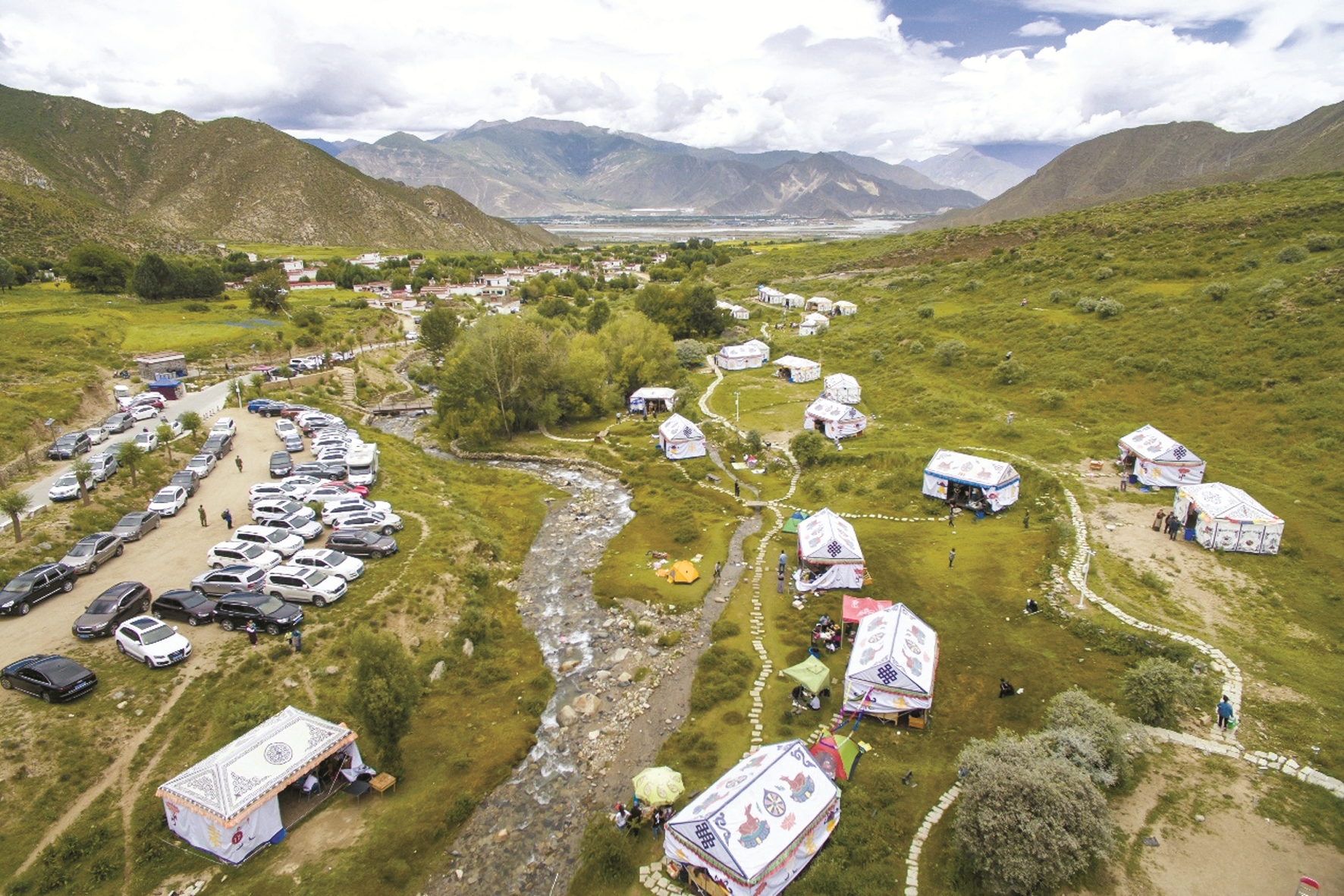 圖為達(dá)東村林卡里錯(cuò)落有致的帳篷。 (達(dá)東鄉(xiāng)村民俗文化旅游有限公司供圖)