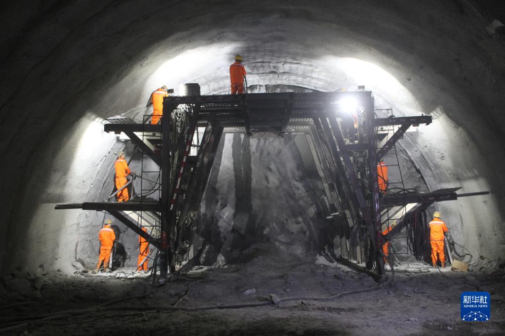 在拉薩至日喀則高速公路帕當(dāng)山隧道,工人正進(jìn)行掌子面打眼作業(yè)。(中鐵二十一局供圖)