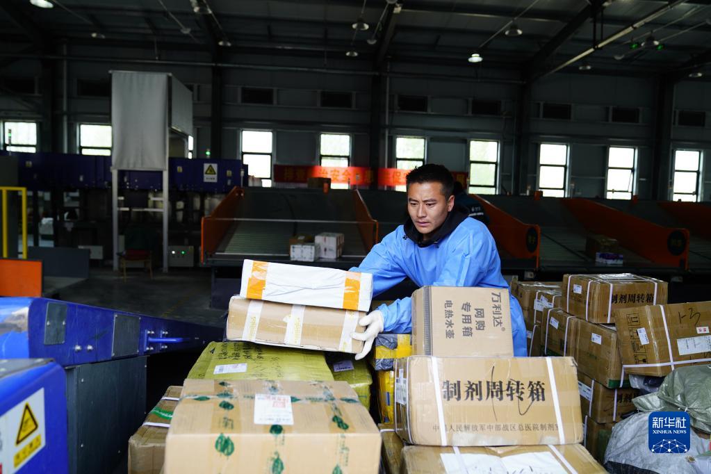 在中國郵政集團(tuán)有限公司山南市分公司郵件處理中心,員工正在裝運(yùn)快遞。新華社記者 劉洪明 攝