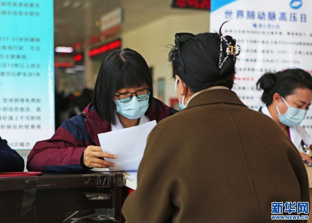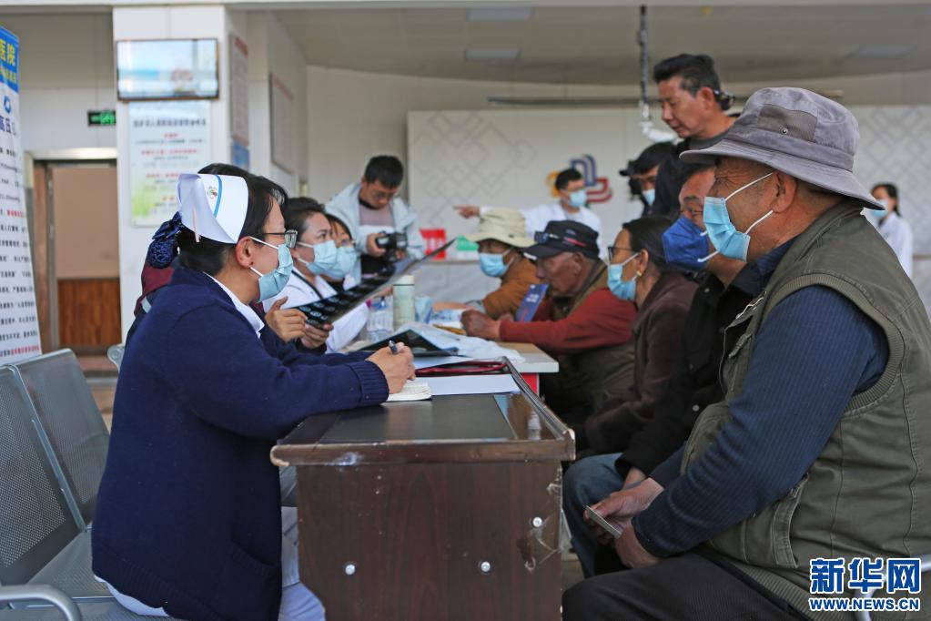 圖為“京藏?cái)y手,護(hù)佑藍(lán)唇”義診活動(dòng)現(xiàn)場(chǎng),醫(yī)生在為患者測(cè)量血壓。(5月5日攝)