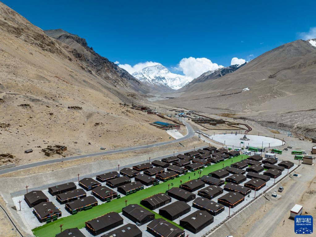 這是珠峰游客大本營(yíng)的帳篷旅館(5月20日攝,無人機(jī)照片)。新華社記者 孫非 攝