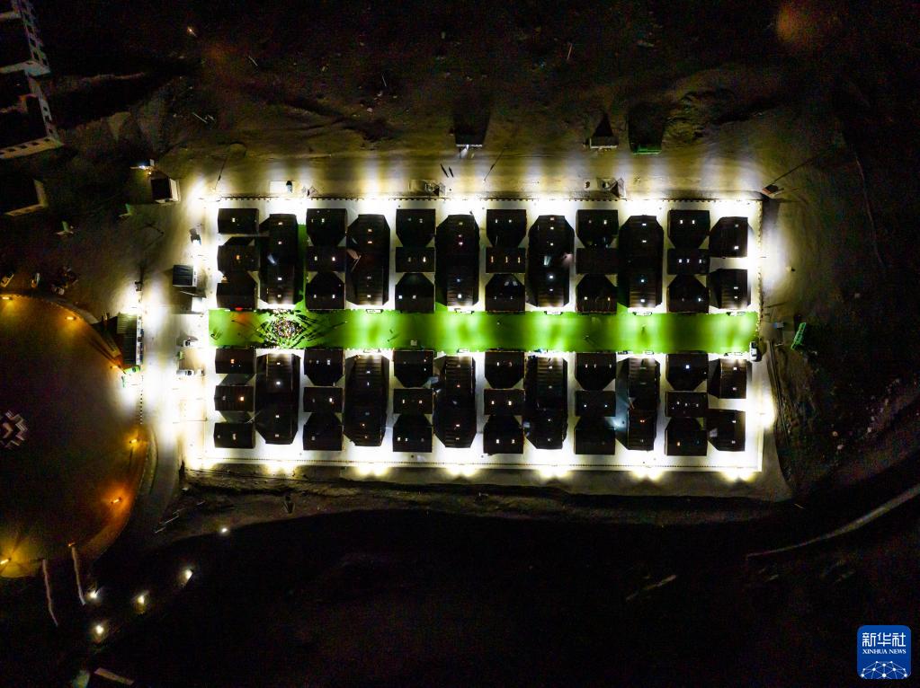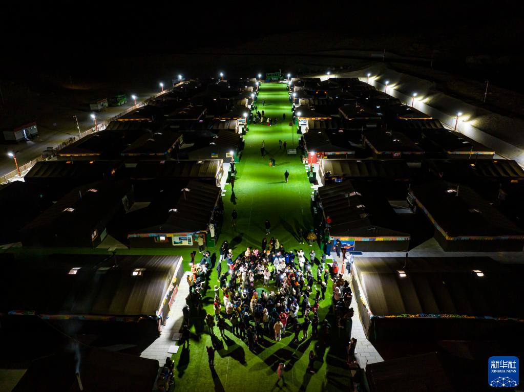 這是夜晚的珠峰游客大本營(yíng)帳篷旅館(5月16日攝,無人機(jī)照片)。新華社記者 孫非 攝