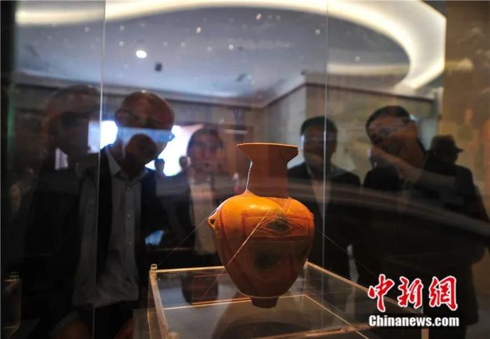 參觀者在西藏山南市博物館觀賞彩陶文物。張偉 攝