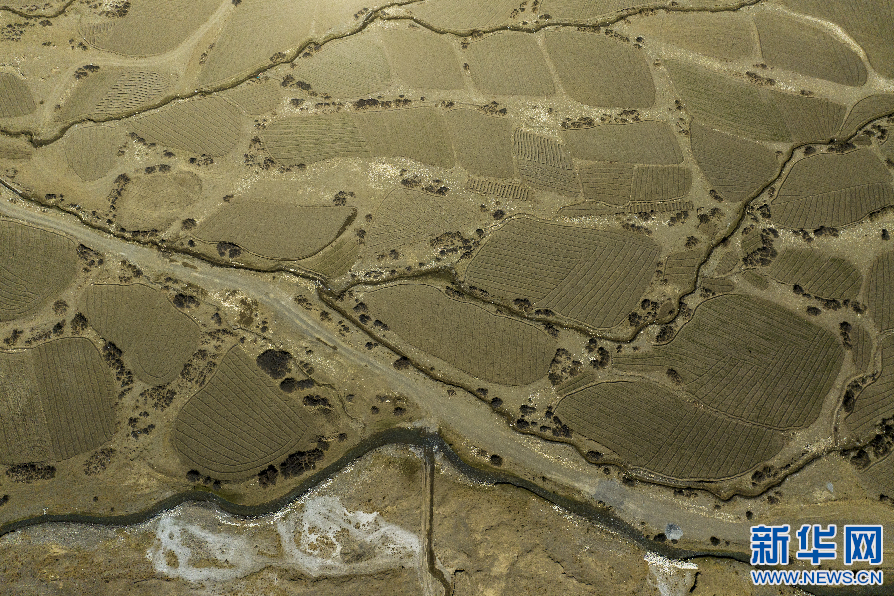 5月20日,在西藏定日縣扎西宗鄉(xiāng)境內(nèi)拍攝的農(nóng)田(無人機照片)。 新華網(wǎng) 旦增努布 攝